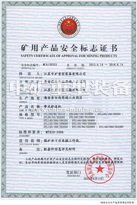 1.7.1 與輸送機(jī)配套的電動(dòng)機(jī)、電控設(shè)備應(yīng)符合GB3836.1-2000《爆炸性氣體環(huán)境用電氣設(shè)備 第1部分:通用要求》的規(guī)定,并具有安全標(biāo)志準(zhǔn)用證;
